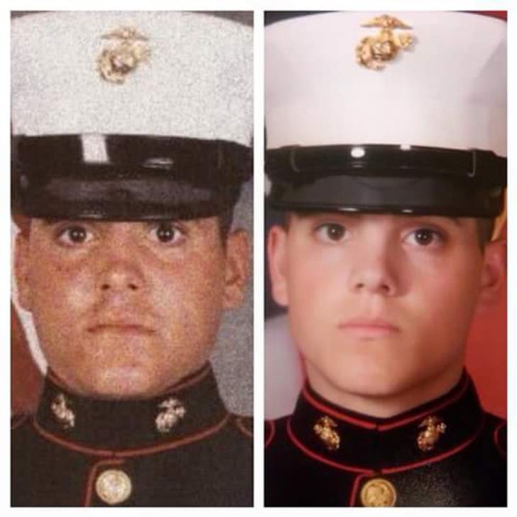 ▼爸爸和兒子同樣的年齡拍攝的照片。