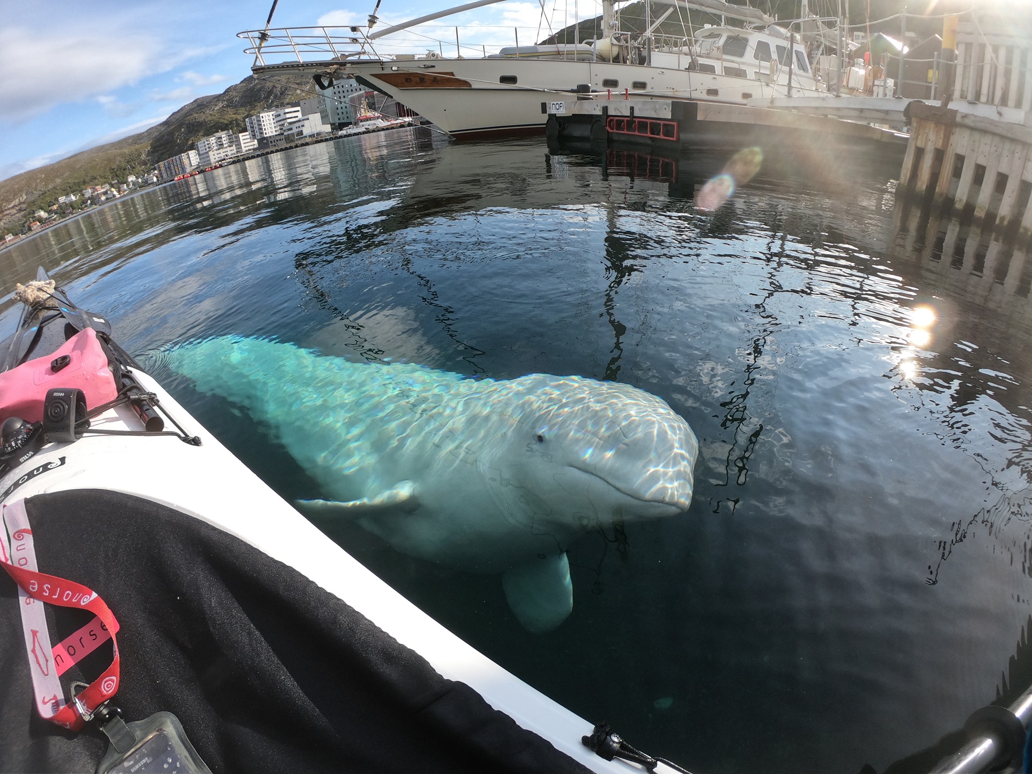 2020年11月19日挪威東北部沿海有一隻叫Hvaldimir的小白鯨,牠是去年4月出現在這一片海域的。當時Hvaldimir身上綁著攝影機,有人懷疑他是俄羅斯海軍訓練的間諜。當地人給牠取名為Hvaldimir,這個詞就是挪威語中的鯨魚「Hval」和普丁「Vladimir Putin」混合起來的。