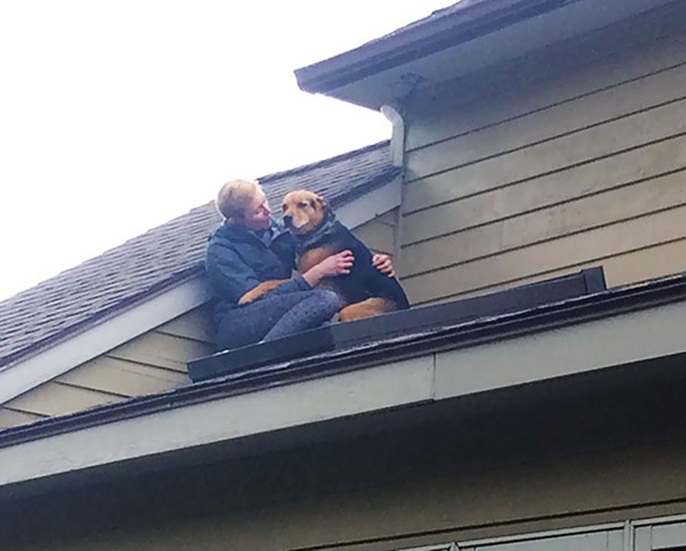 ▼牠跟著家裡的貓咪爬到了屋頂上,結果下不去了,主人鼓勵牠好久才鼓起勇氣下去。