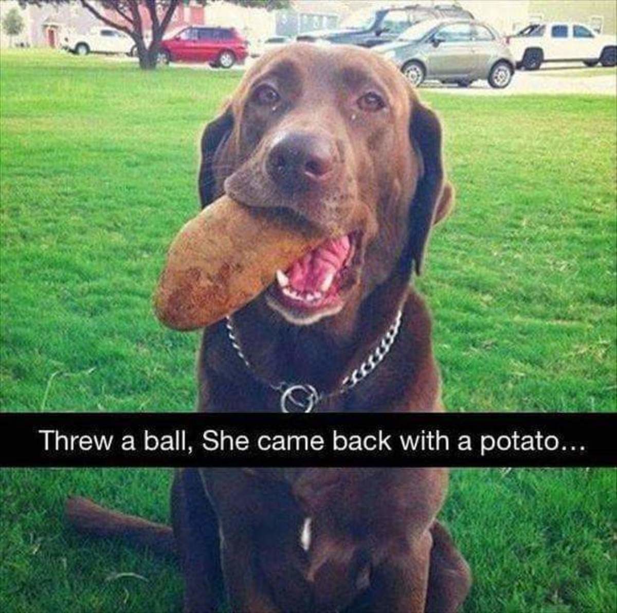 ▼主人扔出去一顆球,結果牠咬回來一顆馬鈴薯。