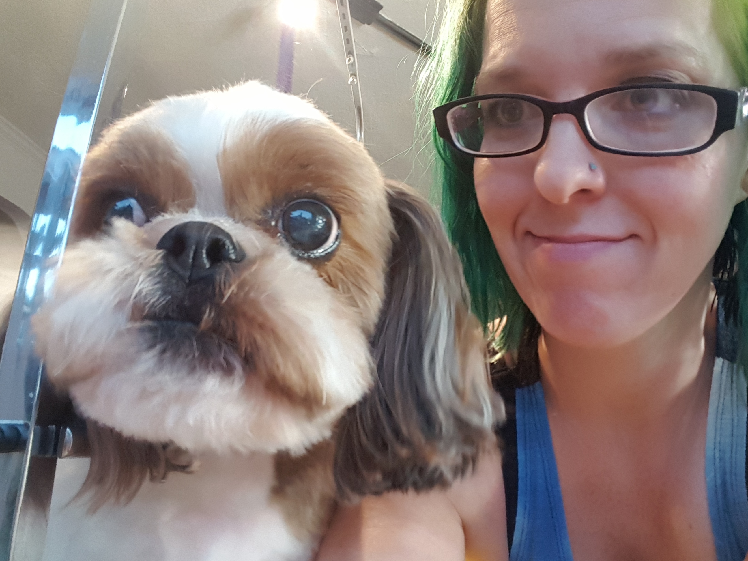 ▼美容師在網路論壇Imgur分享了這張照片,並寫道:「我昨天在外面遇見寵物美容店裡最喜歡的狗狗,但牠看起來好像很驚訝,我怎麼不是24小時住在美容院。」