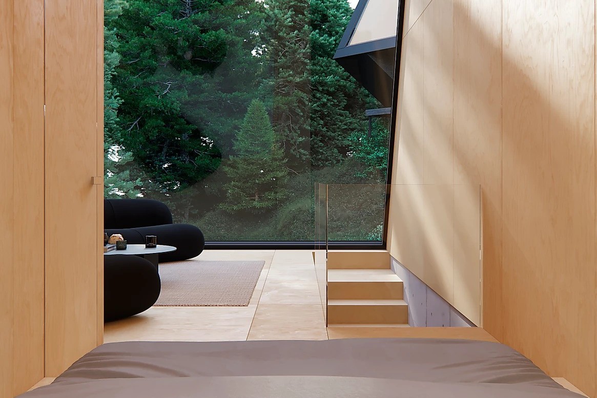 這棟幾何形狀的房子,讓室內的舒適感與室外的自然感相互結合,一看就覺得很療癒、很高級。如果要在山中建造一座休閒小屋的話,Pine House是很不錯的選擇!