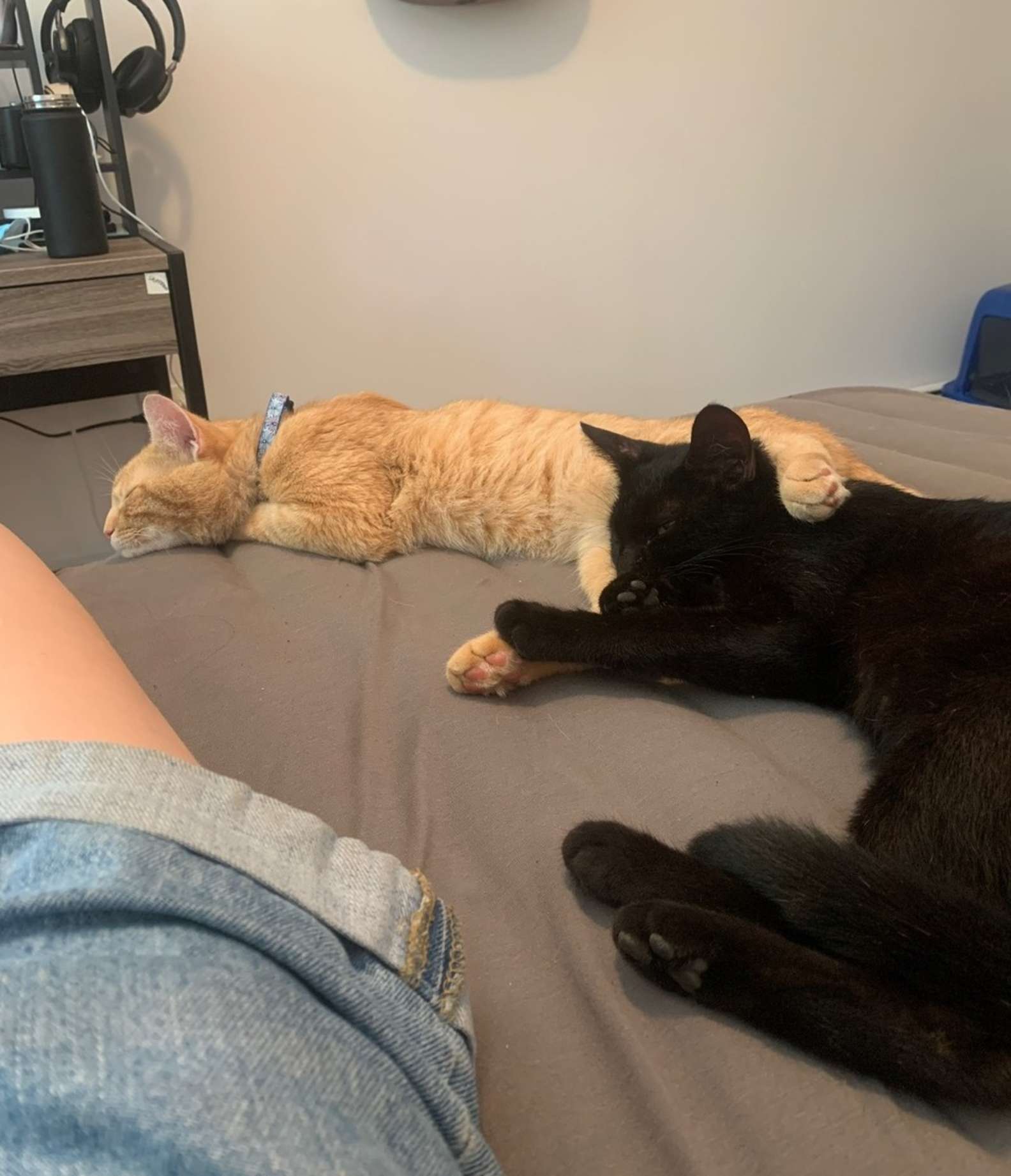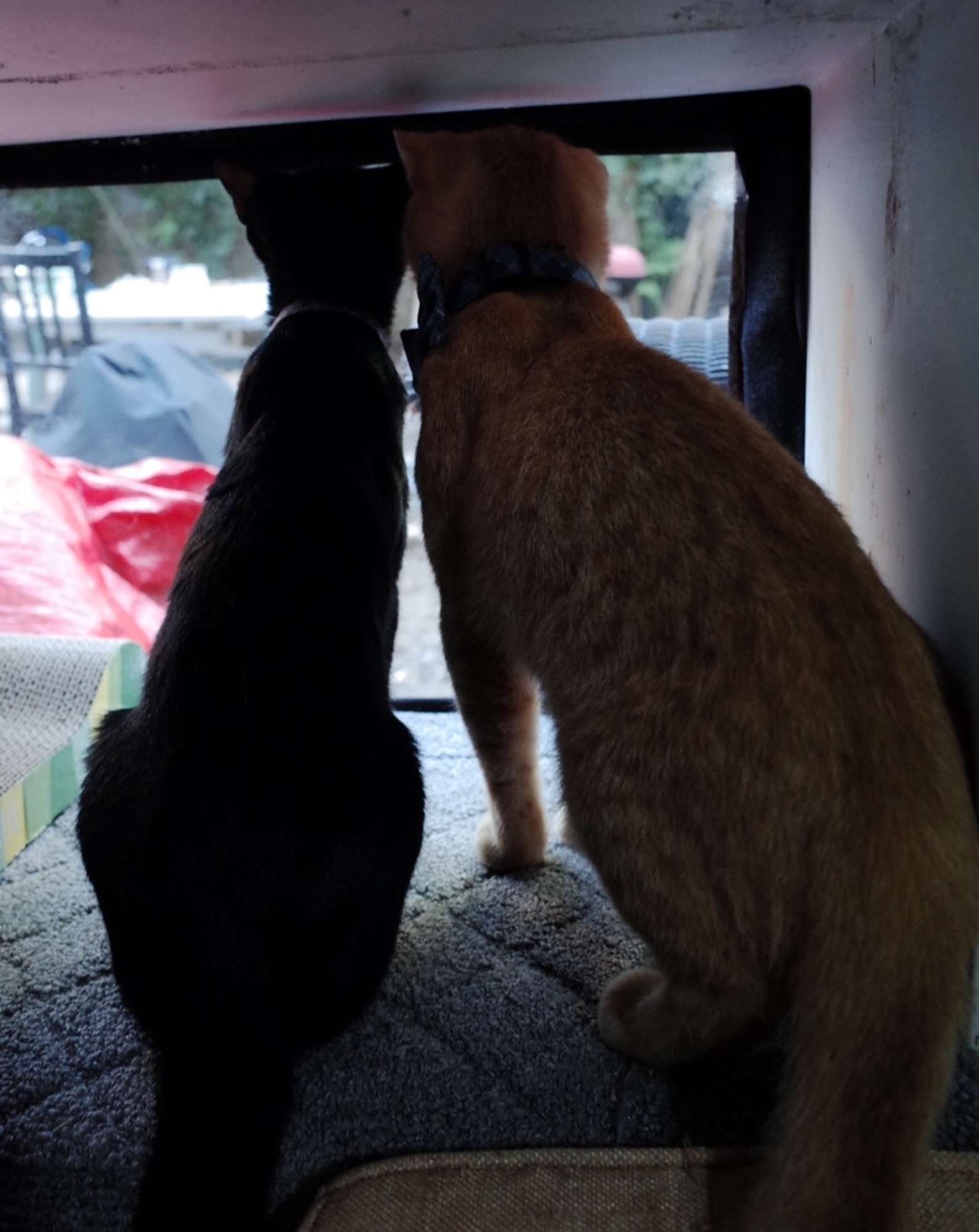 2020年11月25日貓咪主動找上門~美國紐約布魯克林(Brooklyn)女子Gianna Llewellyn和男友Rob剛剛搬到新公寓,就有訪客來拜訪。那是生活在附近的兩隻浪貓,其中一隻是黑貓,另一隻是橘貓。Gianna拿出魚肉給牠們吃,從此之後牠們每天都會來拜訪。