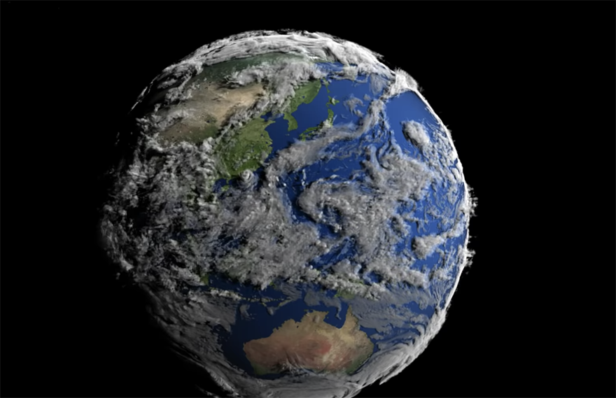 科學家會透過GEOS-5繪製出全球氣候模擬圖。這段影片就是根據2005年時的數據製作而成的。哪怕看過很多太空視角的地球照片、影片,再看這段影片也會覺得很壯觀呀!