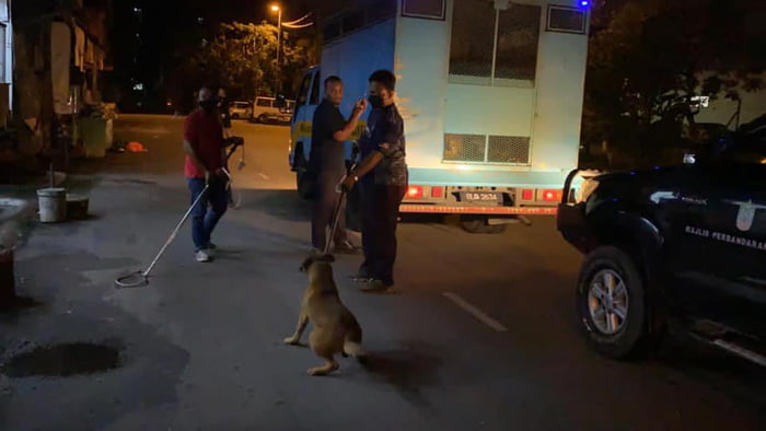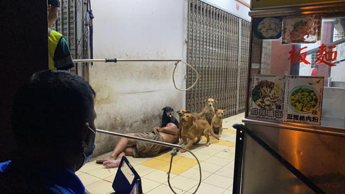 2020年11月27日最近馬來西亞加影市(Kajang)議會在Facebook上分享了一組照片。這是當地治理流浪狗行動過程中拍攝的,工作人員到街頭捕捉流浪狗,其中一張照片引發討論。照片中的流浪狗看到有人追捕沒有逃跑,反而圍繞在一個躺在地上的街友身邊。