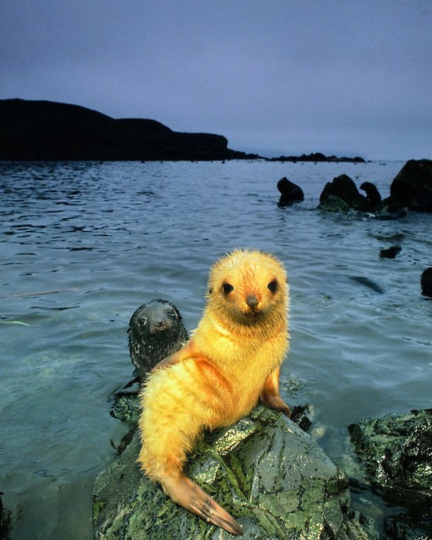 ▼金色毛髮的小海豹!