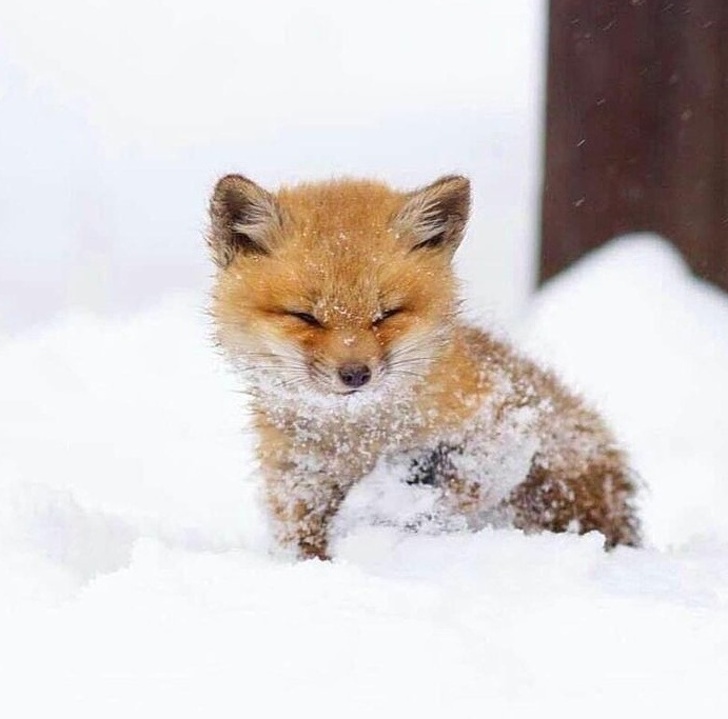 ▼狐狸寶寶的第一場雪!