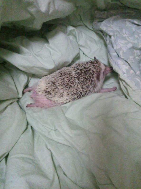 ▼看到平常很容易緊張的刺猬,睡成這個模樣是不是令人也感覺很暖心呢?