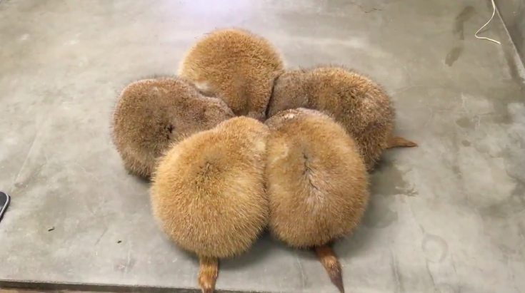 2020年11月29日毛絨絨的小動物讓人覺得美好又治癒。一名網友分享了日本秋田大森山動物園中5隻黑尾土撥鼠聚在一起吃大餐的可愛畫面。只見牠們圍成一圈,埋頭猛吃,連腦袋都看不見了,就像5個毛球一樣,真是萌翻了~