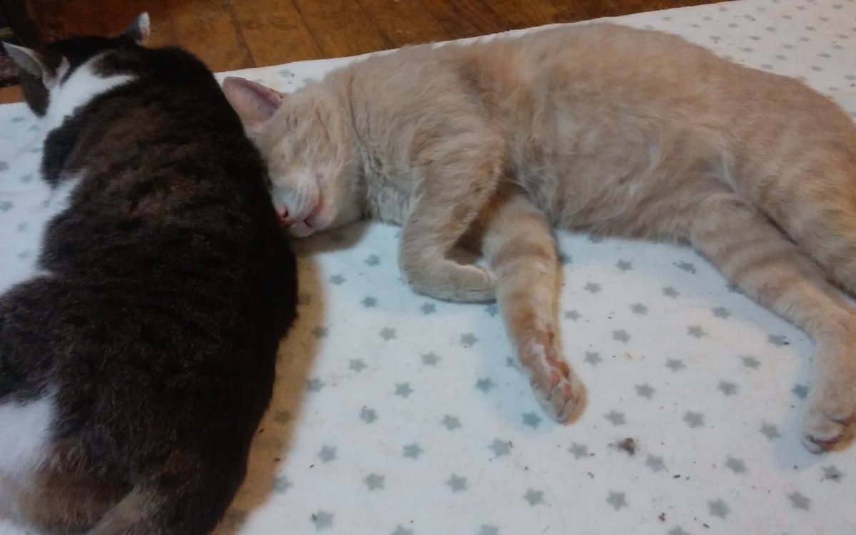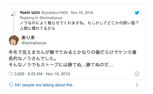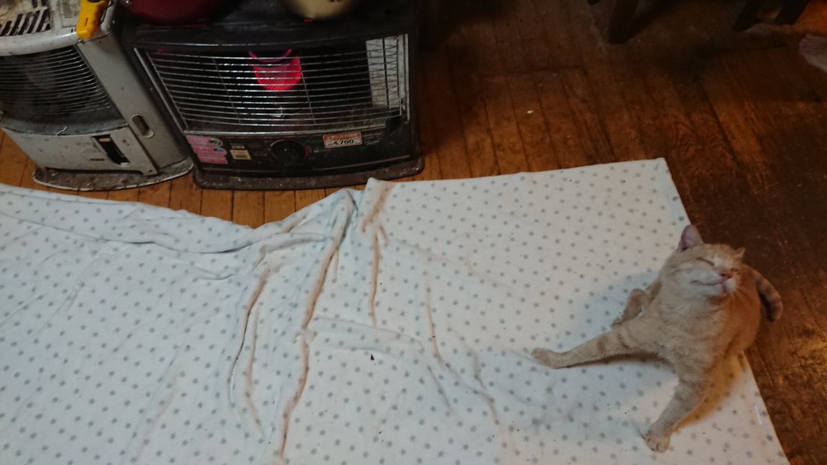 ▼「雖然冬天有厚厚的毛遮蓋看不見,但摸牠的時候發現身上滿是痕跡。感覺是會帶頭逞兇的老大,即使是這樣的浪浪也輸給了暖爐…」