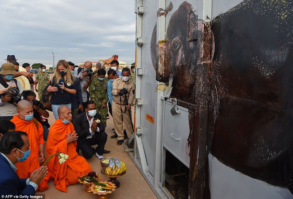 ▼運輸過程中Kaavan非常平靜,專家為牠準備了200多公斤水果,包括香蕉、西瓜等等。雪兒先在巴基斯坦給Kaavan送行,然後再到柬埔寨暹粒機場迎接牠。未來Kaavan生活的保護區中還有3隻雌象,牠再也不會孤單了。