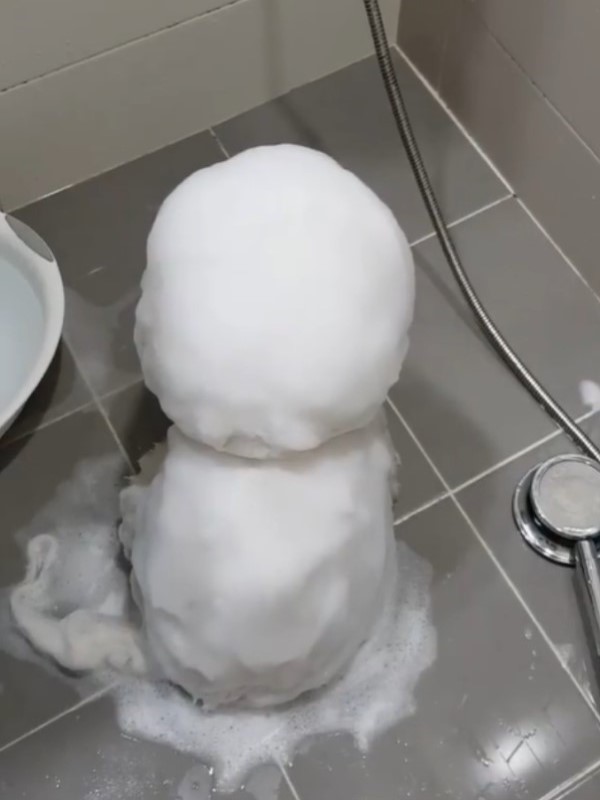 2020年12月02日韓國一名網友@toto_ddung_eey日前在網路上分享了一段影片,影片中浴室裡出現了一個圓滾的「白色小雪人」,但是當該網友拿蓮蓬頭對著小雪人沖水時,小雪人竟沒有融化,就在大家疑惑的時候,小雪人竟然還動了一下,原來這個小雪人的本尊其實是一隻比熊犬!