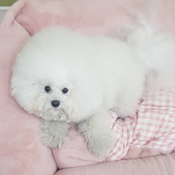 ▼這只比熊犬名叫多多,今年4歲了,多多的性格非常溫柔,看牠洗澡時乖巧的模樣就知道啦。