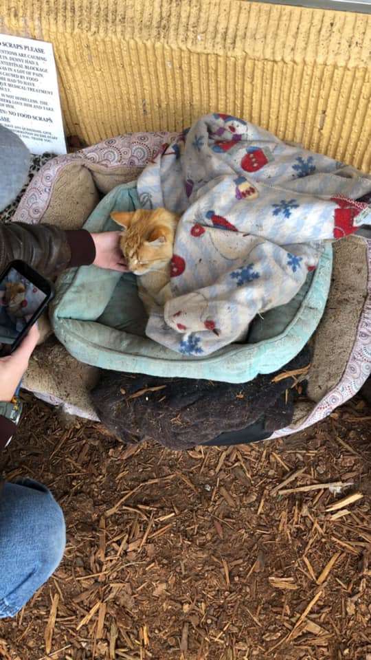 ▼Leader說:「這隻小貓擄獲了所有人的心。牠在這裡住了下來,有顧客為牠蓋了一間小屋,還有人定期給牠送來新毯子。天氣變冷的時候,有人給牠準備暖燈。牠在這裡過得很好,還有一位獸醫隨時關注牠的健康狀況。」