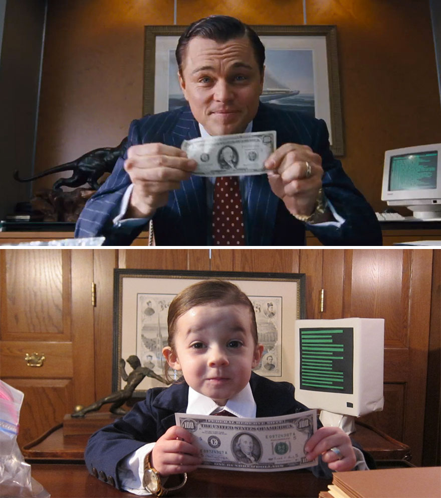媽媽揪3個孩子「神還原奧斯卡大片」 《華爾街之狼》「Q版李奧納多」療癒度爆表❤️