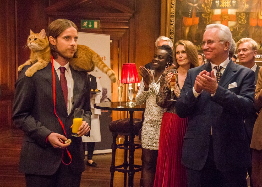 ▼續集仍舊由前作的主演Luke Treadaway飾演James。電影開拍的時候,Bob比上一部電影老了4歲,但經過獸醫的全面評估和檢查,確定牠身體非常健康,足以勝任拍攝任務。劇組為了不讓Bob太辛苦,特別找來2隻貓咪演員擔任替身,輪流上陣,這才完成了電影的拍攝。