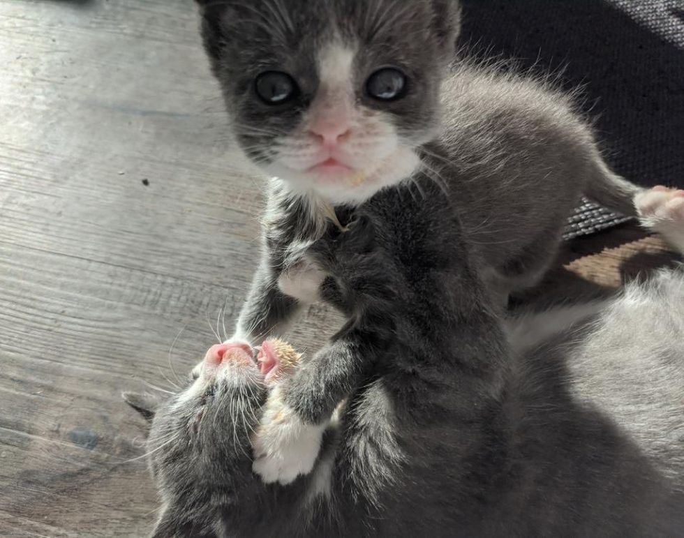 ▼Piper的恢復速度非常快,牠有足夠的力氣後,就開始跟兄弟姊妹們嬉鬧玩耍。Jillian笑說:「牠的體型比兄弟姊妹們小很多,但牠是一個很堅強的小傢伙!」