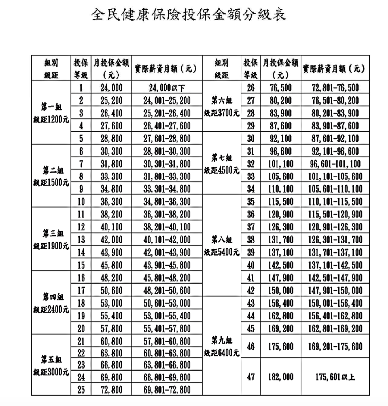 (圖片來源:衛福部投保金額分級表)