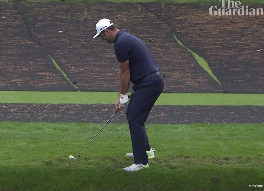 ▼當天喬恩拉姆用4號鐵開球,小白球在水面上跳4下後彈上果嶺,然後順著果嶺進洞。這是一週內喬恩拉姆收獲的第二個一桿進洞。他的狀態非常好,運氣也超棒。他接受採訪時說:「這一週很特別,也恰好是我的生日,希望能夠開啟一系列好事。」