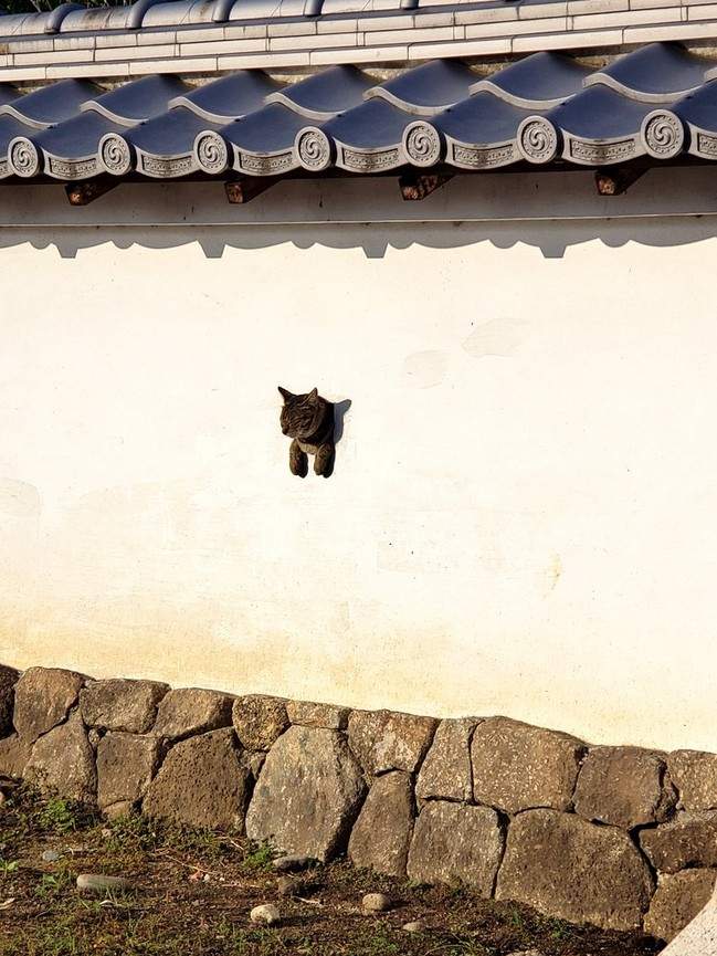 日本古城「牆壁上的洞長出貓」 遊客笑到拍不停:最萌奇觀~