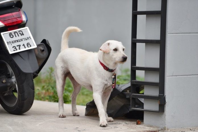▼鄰居在附近的街頭看到了Look Moo,連忙通知Boonsong。Boonsong放下手頭的事,用最快的速度趕到現場,果然找到了不見5天的狗狗。狗狗沒有受苦,身體狀況很好,Boonsong鬆了一口氣,決定辦流水席慶祝。