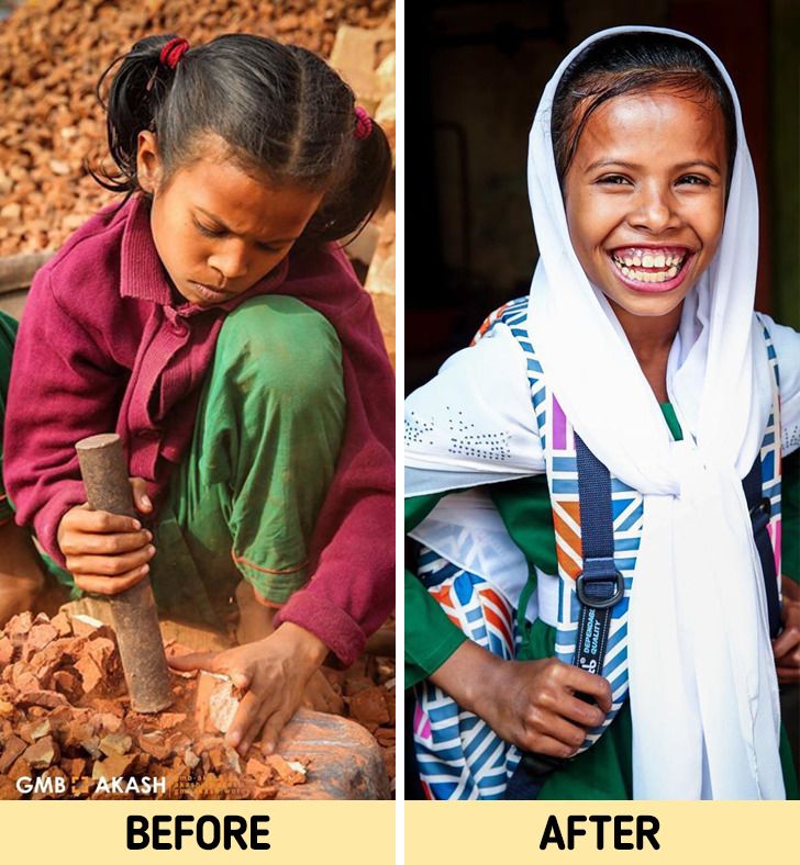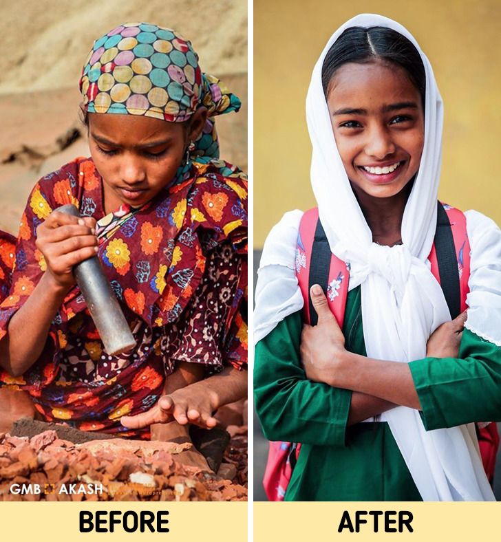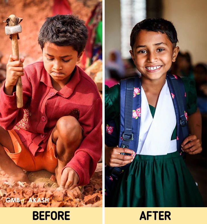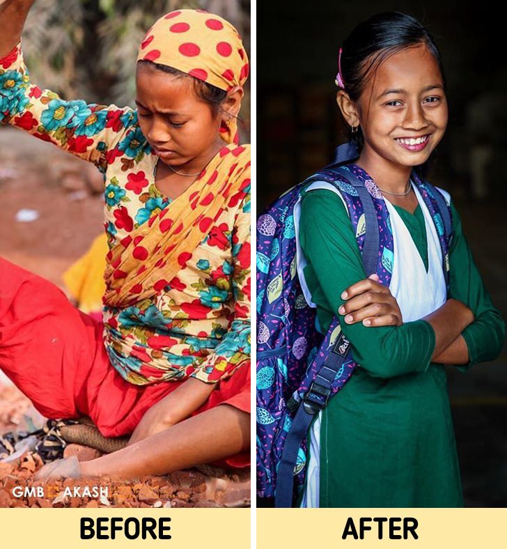 2020年12月13日兒童受教育的問題一直備受關注。孟加拉的童工問題非常嚴重,很多孩子因為家中經濟的關係,明明在適學年齡,卻不能讀書,只能工作賺錢養家,讓人非常心疼。孟加拉攝影師GMB Akash希望能夠給這些孩子提供幫助,多年來他一直堅持捐款,資助失學兒童回到學校讀書。除此之外,他還拍下孩子們上學前和上學後的對比照,孩子們拿起課本後臉上燦爛的笑容讓人非常感動。