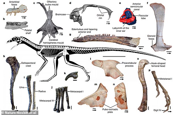 ▼古生物學家們分析幾十年前發現的兔蜥龍骨架化石,結果發現牠們的骨骼特徵跟翼龍相似,而且顱骨特徵與敏捷性和平衡型一致,這可能跟翼龍在空中平衡飛行的能力密切相關。研究人員基於μCT掃描的X射線創建物理對象的三維橫截面,計算機層析成像數據對於研究具有重大的作用。