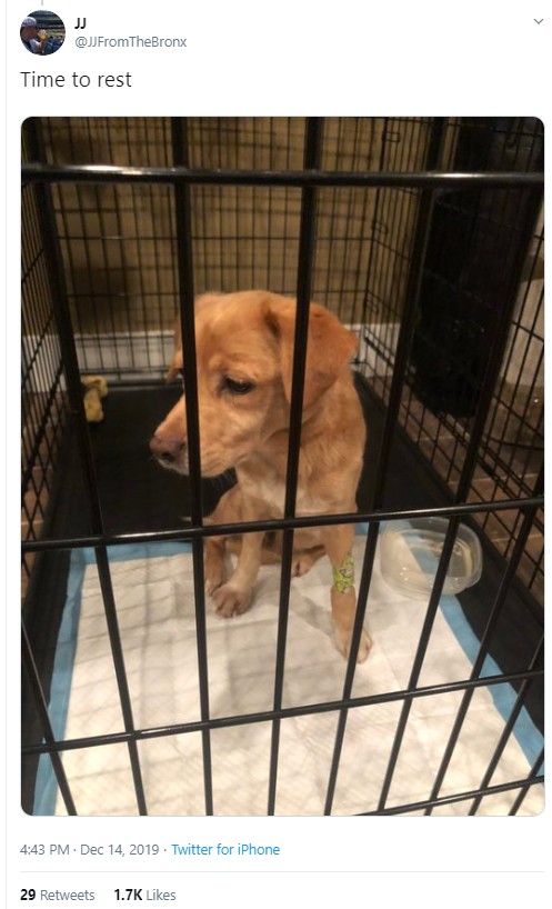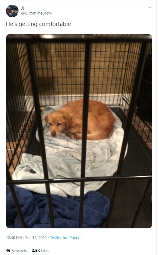2020年12月18日命中注定是你家的毛孩~有一天凌晨4點,國外網友Jack Jokinen被妻子叫醒。他家有一個剛剛1月大的寶寶,Jack本以為孩子怎麼了,沒想到妻子卻說:「寶寶很好,但……我們家多了一隻狗!」當時Jack睡得迷迷糊糊,一時之間弄不清楚妻子的意思,他決定下樓看一看。