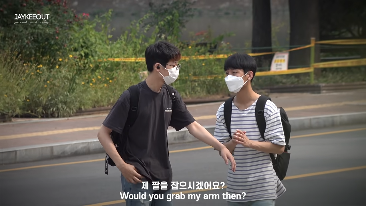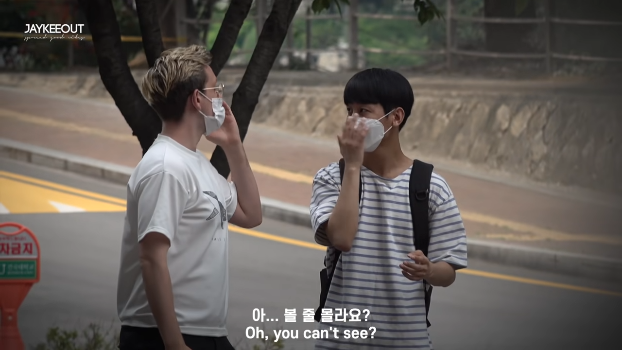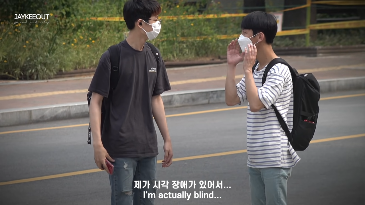 2020年12月19日在街頭遇到視力不佳的陌生人,你會出手相助嗎?最近韓國YouTube頻道「JAYKEEOUT」拍攝了一段街頭實測影片。他找來另一位YouTuber「OneshotHansol」,請他假裝迷路,看看路人會不會伸出援手。Hansol的外表看起來像正常人,但有視力問題。他不是全盲,距離很近的話能看到模糊的輪廓,不過幾乎是看不到周遭的事物的。