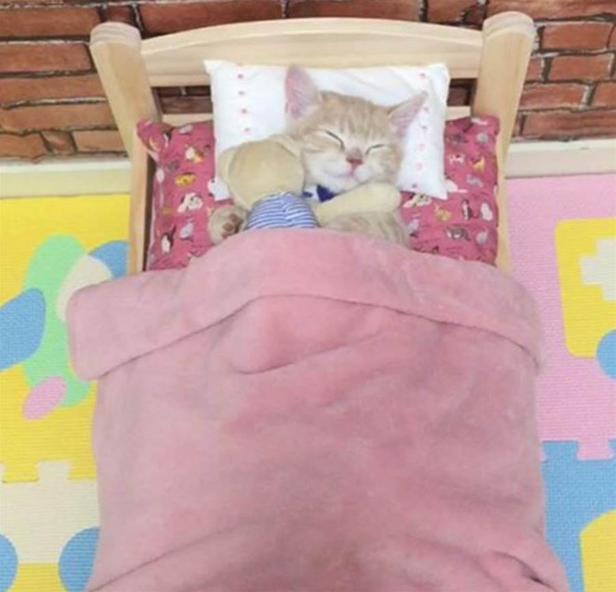 ▼主人給牠準備了很多小道具,比如小床、玩偶等等,牠過著公主一樣的生活。