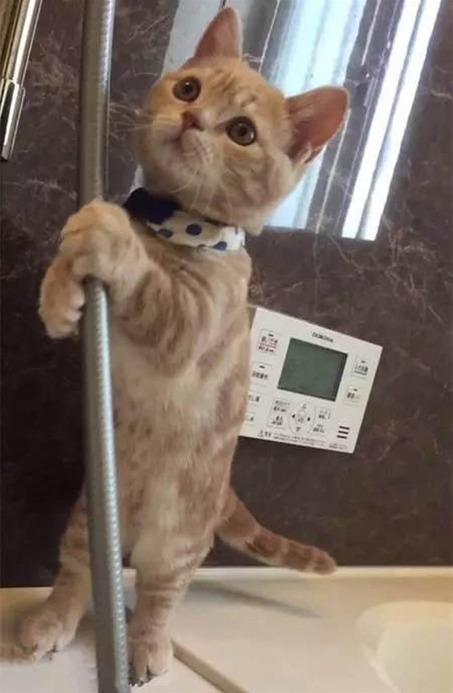 可以不洗澡嗎?短腿貓「緊抱水管」發射無辜電波 網被萌化:不要逼牠了~