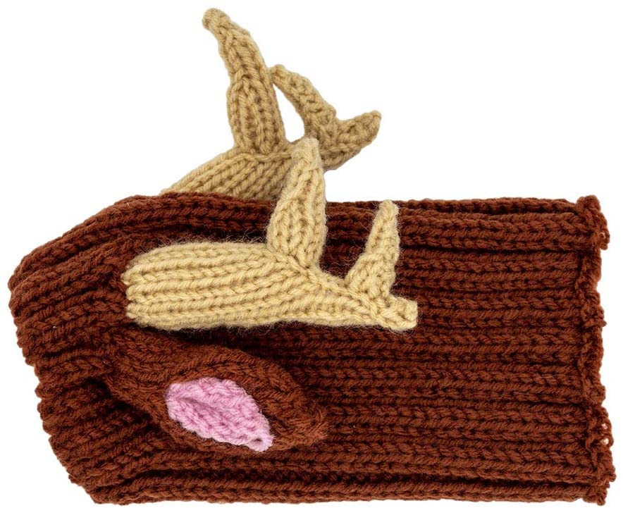 ▼這款圍脖是手工編織的,連馴鹿的耳朵、角都還原出來,棕色的毛線非常百搭,不管狗狗是什麼顏色,戴上後都很可愛。它能包覆住狗狗的脖子、耳朵,戴上後非常暖和,還能防止狗狗弄髒這一部位的皮毛。
