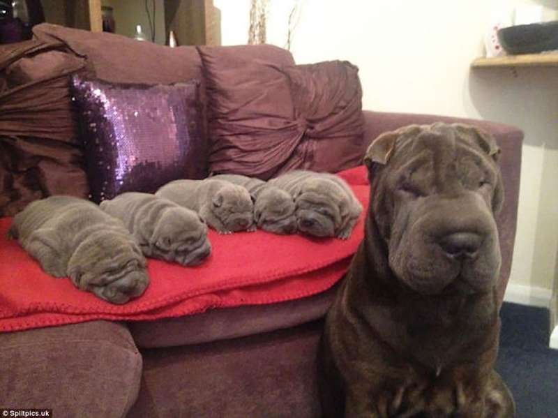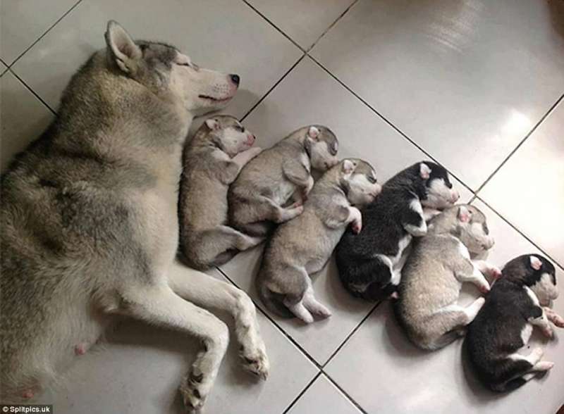 ▼你能數清楚這隻驕傲的狗媽媽生下了幾隻小狗嗎?