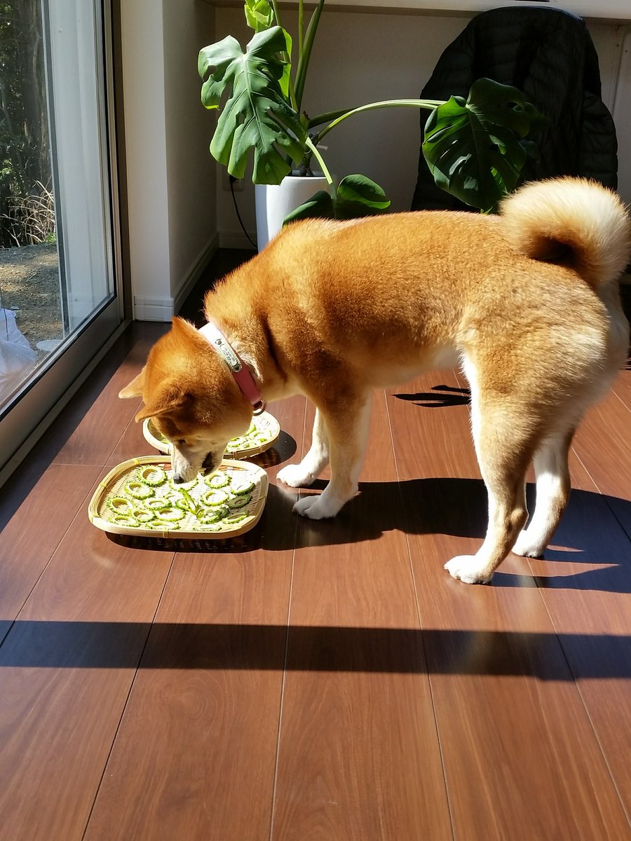 ▼那次推主在家中曬苦瓜,柴柴悄悄走過去吃了一塊。主人將牠的反應全部拍下來,笑說:「不需要台詞也能傳達像4格漫畫的感覺(笑)」