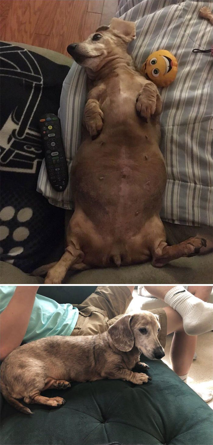 狗狗過重是一個大問題,雖然肥肥的很可愛,但是可能會影響到健康。如果你家的狗狗也有過重的問題,就從控制飲食、多多活動開始吧。看看上面這些狗狗減重前後的對比照,簡直太勵志了~