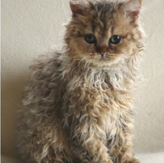 ▼捲毛貓的歷史並不久,是近代才出現的變種。1987年時人們發現了第一隻帶有捲毛基因的貓咪,繁育家研究後讓牠跟波斯貓配種,這才有了如今我們看到的捲毛貓。