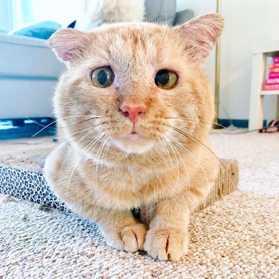 ▼現在Bruce終於有家了,牠躺在地毯上,發出歡快的呼嚕聲,還超喜歡黏著主人,不管Sandra去哪裡,牠都要跟著。有一天Sandra泡澡時,Bruce以為她有不利,馬上變得慌張起來,急得喵喵叫。