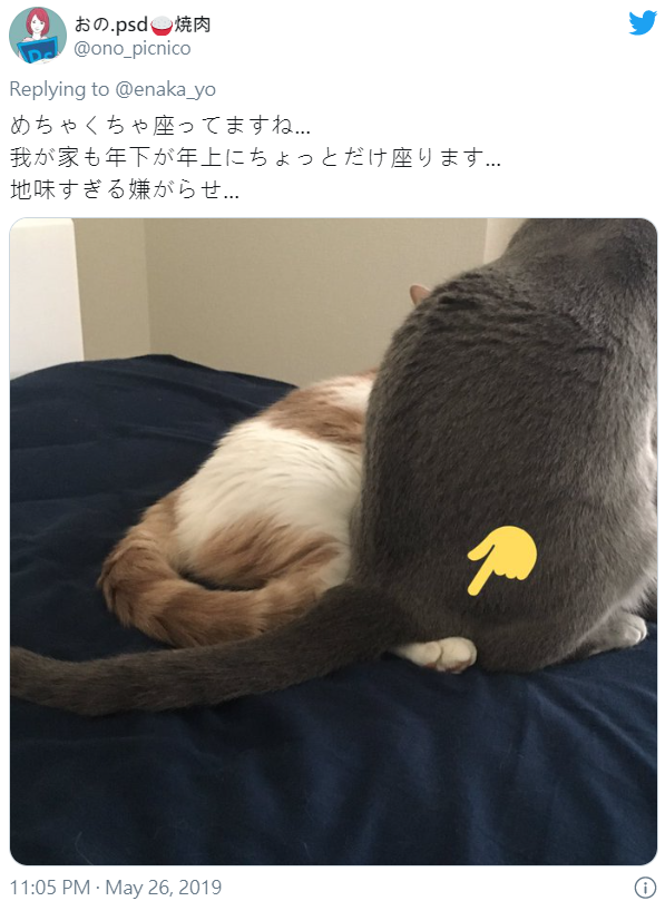 ▼「我家也是年紀小的會坐在老的那隻身上…」