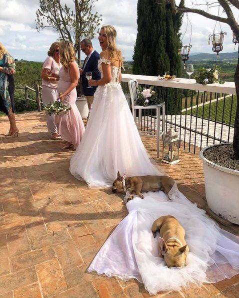 當伴郎好累~ 2隻汪參加婚禮竟「躺婚紗午睡」 新娘選擇原地結婚:就這樣拍♡