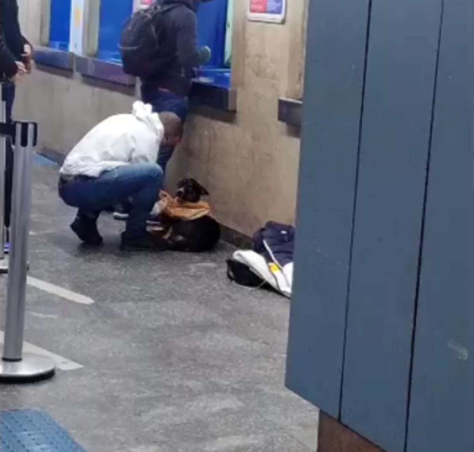 ▼當時Fernando Gabriel和朋友Felipe一起到車站搭乘地鐵,他們買票時看到了那隻流浪狗。Fernando說:「那是今年最冷的一天,正當我不知道該怎麼辦的時候,Felipe突然把包包放在地上,先是脫下運動外套,又把短袖脫下來,蹲在地上細心給狗狗穿上,希望能幫牠保暖。當時Felipe不知道我在旁邊錄影。」