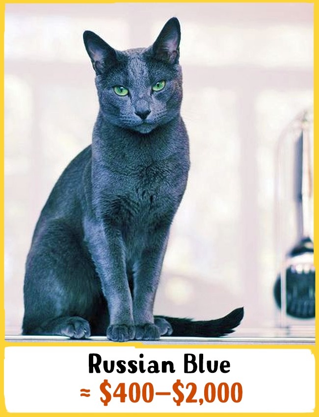 ▼8. 俄羅斯藍貓。這是最受歡迎的短毛貓品種之一,牠在1893年才在俄羅斯以外的地方出名。據說,這隻貓會給房子帶來好運氣。牠的價格為12000到60000新台幣。