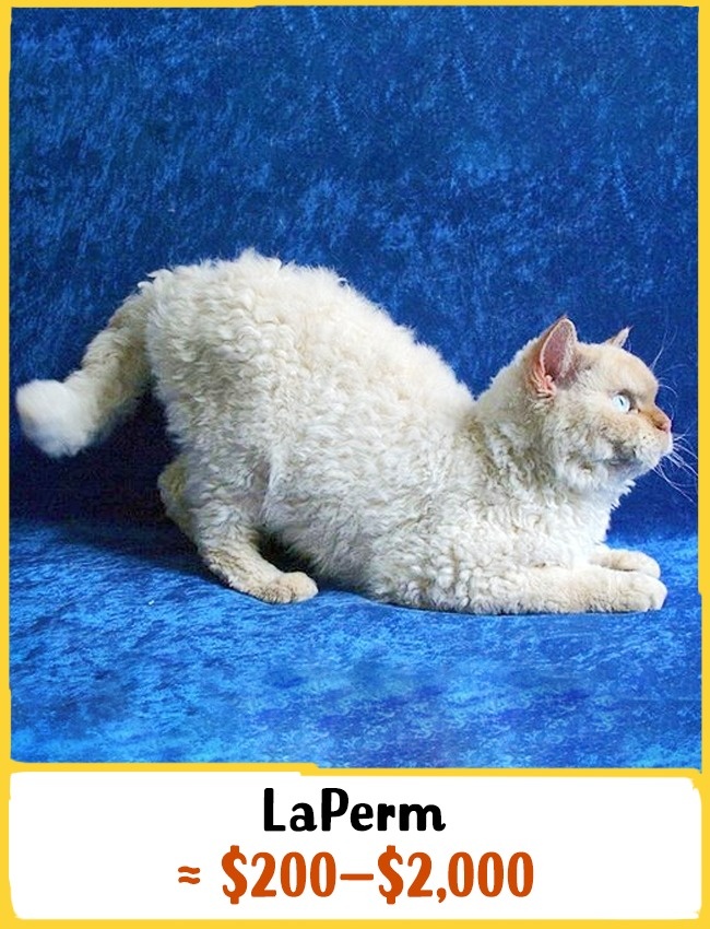 ▼7. LaPerm。這是1980年在美國出現的最不尋常的品種之一。牠們除了的捲髮,還有一個更具體的特徵:牠們不會讓主人過敏。這隻種貓的價格從6000到60000新台幣不等。