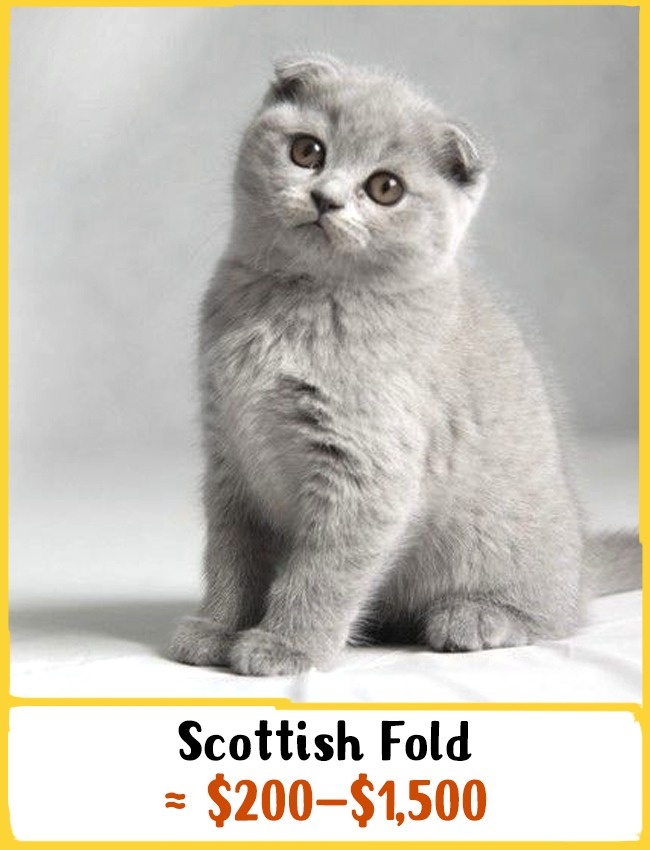 ▼3. 蘇格蘭貓。牠有著非常可愛的耳朵,這些貓非常聰明,牠們很容易與其他家庭成員相處。牠們可以後腿直立,觀察牠們感興趣的事情。一隻小貓價值6000到45000新台幣。