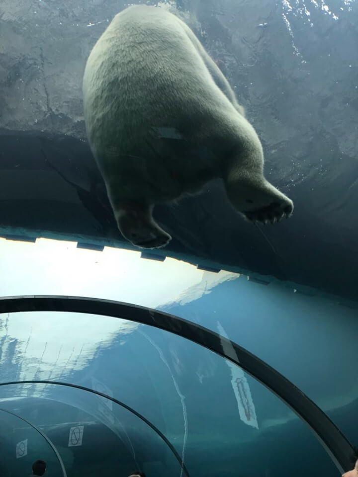▼原來這名網友在水族館的海底隧道中,發現了正坐在玻璃上方的北極熊,從這個角色來看北極熊是不是別有一番風味呢?