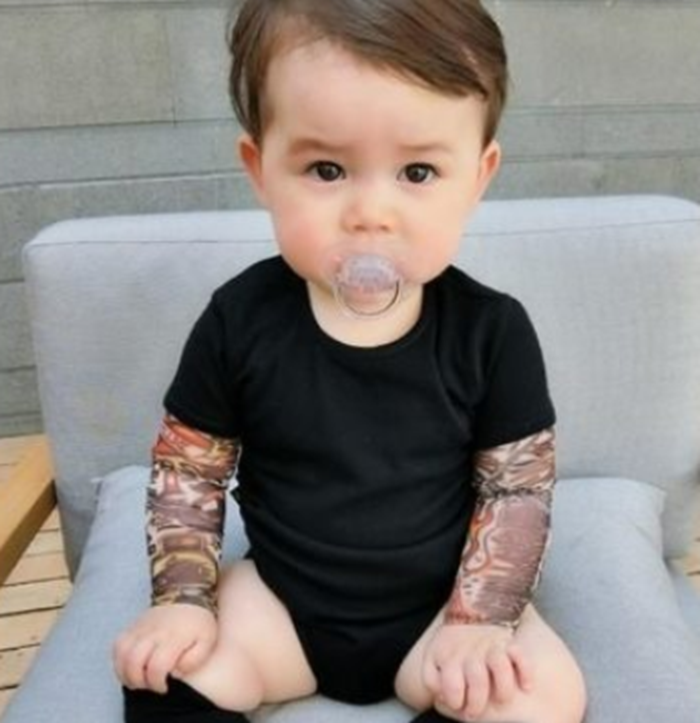 2021年01月02日很多年輕的爸媽開玩笑說:「如果生小孩不是為了玩,那將毫無意義。」他們把小孩裝扮成不同的模樣,玩得不亦樂乎。最近國外的網友發現了一件神奇的嬰兒連體衣,小寶寶穿上這件衣服後,瞬間就會變成「刺青壯漢」!
