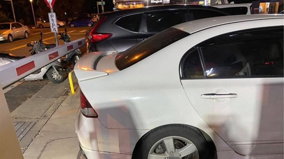 ▼從照片中可以看到,一輛白色Honda大剌剌停在停車場出入口,後面就是柵欄。這輛車將出口完全擋住,其他的車沒辦法出去。原po說,因為這台車擋住出口,有3輛車出不去。白色Honda內沒有留電話,其他車主只好報警,最後才聯絡到車主的丈夫。