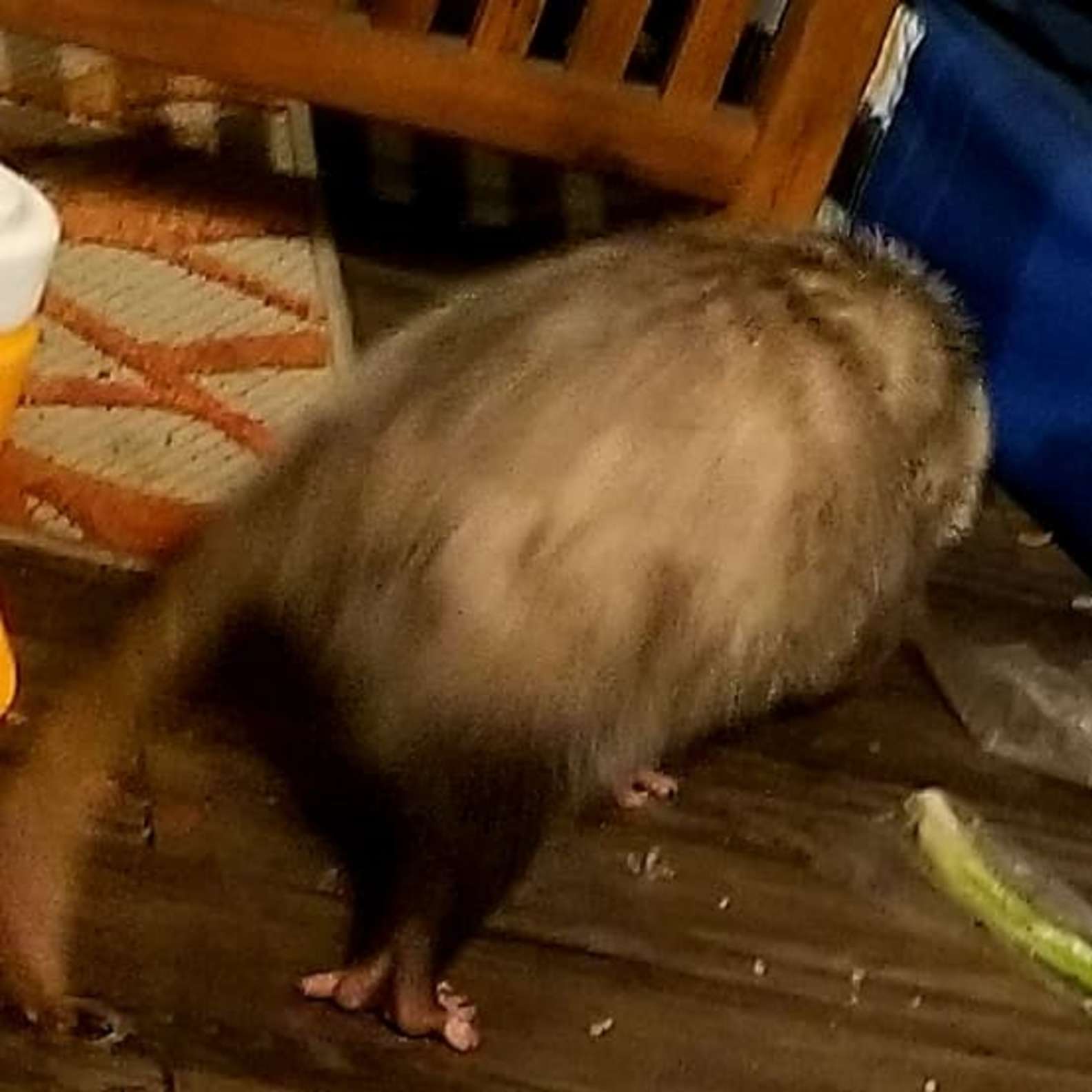 ▼負鼠吃飽後在原地休息了一會兒,被Dust逮個正著、趁機拍了幾張照片。而她開門後負鼠很快就逃跑了,不過也已經留下了足夠的證據,知道這位食材小偷是什麼模樣!Dust說:「負鼠吃飽了,但我們沒有食物做晚餐了。不過這沒什麼,我們覺得很有趣!」