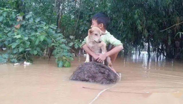 2021年01月06日狗狗能給人帶來快樂和希望~下面這名小男孩的家鄉突發洪水,很多房子都被淹沒了。小男孩抱著家中的狗狗逃生,他們坐在一塊露出水面的大石頭上,這塊石頭剛好能夠容納他們兩個。小男孩抱著狗狗,在大石頭上等待救援,那畫面非常感人。