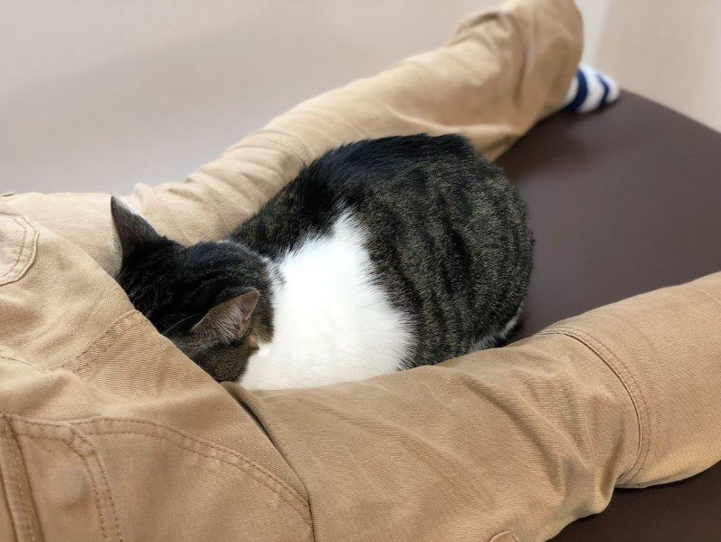▼原po開玩笑說:「師父,你這個新療法是不是菊花會有點熱?」貓咪的臉和身體緊緊貼著奴才的屁屁,不留一絲空隙。這看起來很暖和,但總感覺會有其他的味道…