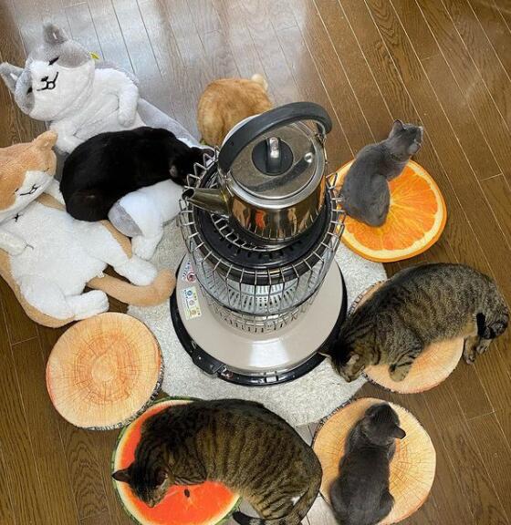 2021年01月07日喜暖的貓咪一到冬天就開始各種花式取暖,暖爐、地板暖氣、電毯等等都會被貓咪霸占。日本一名飼主就在IG上分享了自家的8隻貓咪在暖爐前取暖的畫面,超可愛的一幕把網友萌到不要不要的!